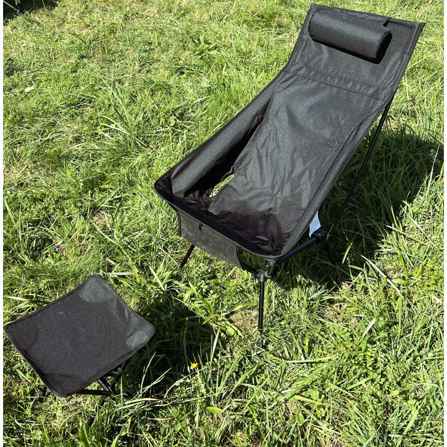 Campingstuhl in niedriger Größe mit faltbarer Fußstütze. Leicht, kompakt und mit Aufbewahrungstaschen. Ideal für entspannende Momente beim Biwakieren, Wandern, Angeln, etc.