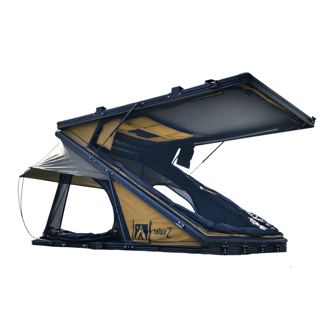 Z-förmige Aluminiumstruktur, atmungsaktives Gewebe. Optimale Belüftung und schneller Aufbau für ein hochwertiges Dachzelt-Reiseerlebnis.