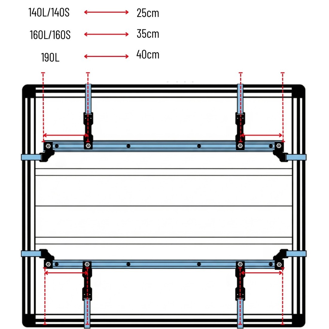 Kompatibel mit allen Zelttypen (140-160-190) sowie allen Planengrößen (140S/140L-160S/160L-190L)