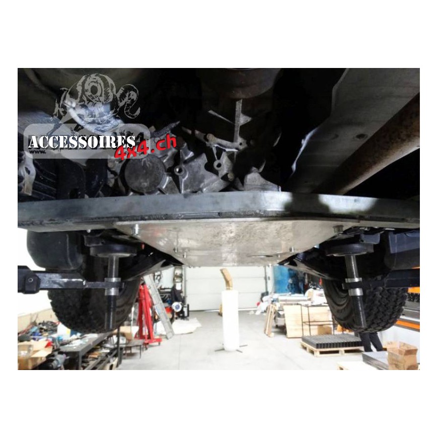 Getriebeabdeckung für das Auto MITSUBISHI L200 IV 05-10, aus 6 mm dickem Aluminium. Das Produkt wird zuerst mit einem Laser geschnitten und dann auf einer Abkantpresse gebogen. Die richtige Form wird durch manuelles Schlichten erhalten.