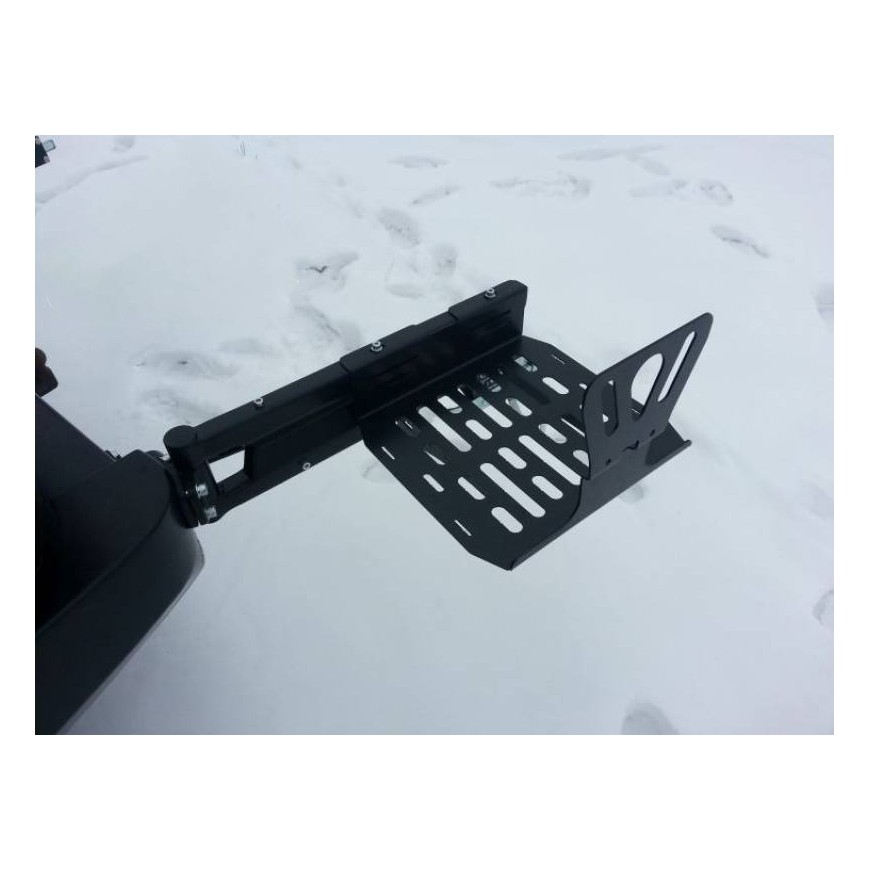30-l-Kanister-Aufsatz für das TOYOTA J100-Fahrzeug, das der Stoßstange F4x4 gewidmet ist. Die Montagestruktur besteht aus 4 mm starkem Blech. Das Produkt wird zuerst lasergeschnitten und dann auf einer Abkantpresse gefaltet. Die richtige Form wird durch manuelles Schlichten erhalten. Der nächste Schritt ist der Korrosionsschutz, der aus Verzinkung und Pulverbeschichtung besteht und dem Befestigungselement das endgültige Aussehen verleiht. Der Flaschenhalter ist mit einem 30 Liter Plastikflaschenkorb ausgestattet. Dank der soliden Konstruktion überträgt der Träger keine Vibrationen und Geräusche in die Fahrzeugmitte. Das Schließen der Patrone öffnet sich mit der Hintertür.