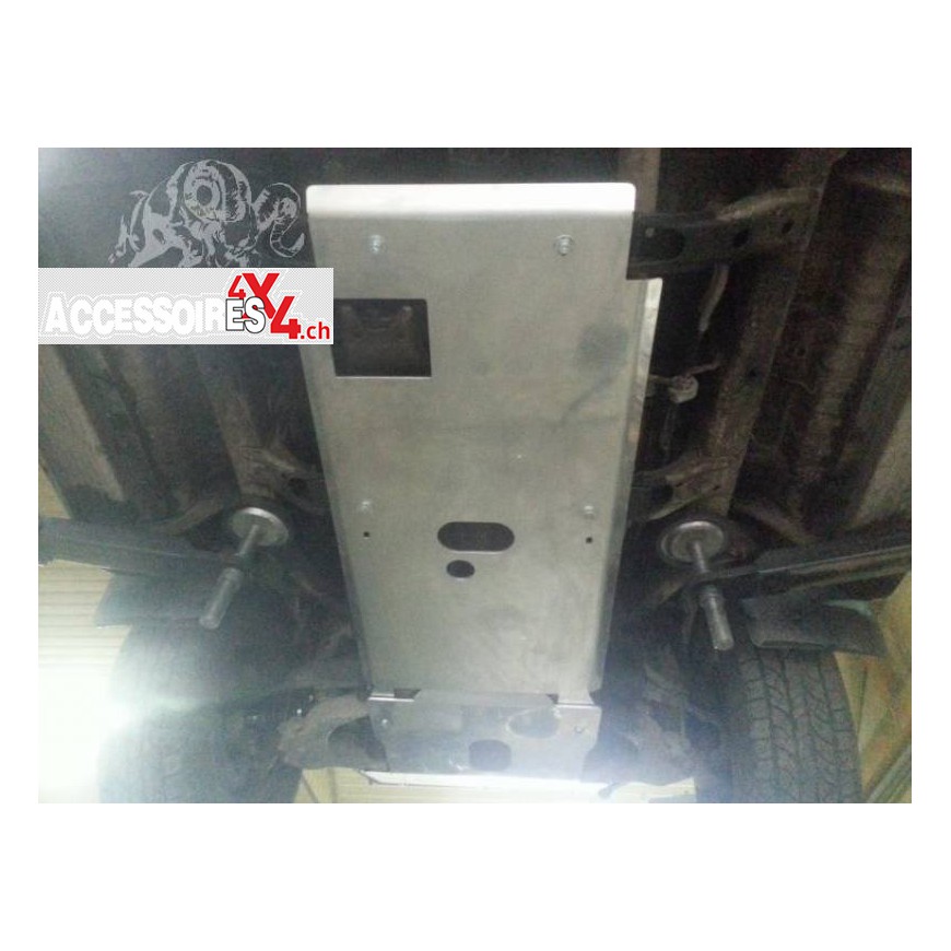 Getriebedeckel für TOYOTA J95. Aus 6 mm starkem Aluminium. Das Produkt wird zuerst lasergeschnitten und dann auf einer Abkantpresse gefaltet. Die richtige Form wird durch manuelles Schlichten erhalten. Die Motorhaube schützt das Getriebe des Fahrzeugs bei Fahrten im Gelände vor Unterfahrten.