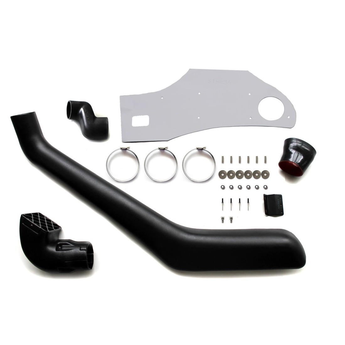 Jeder Schnorchel wird als komplettes Kit geliefert, inklusive hochwertiger Einsätze und Qualitäts-Schraubmaterial, sowie allen notwendigen Komponenten für den Anschluss an den originalen Luftfilterkasten des Fahrzeugs.