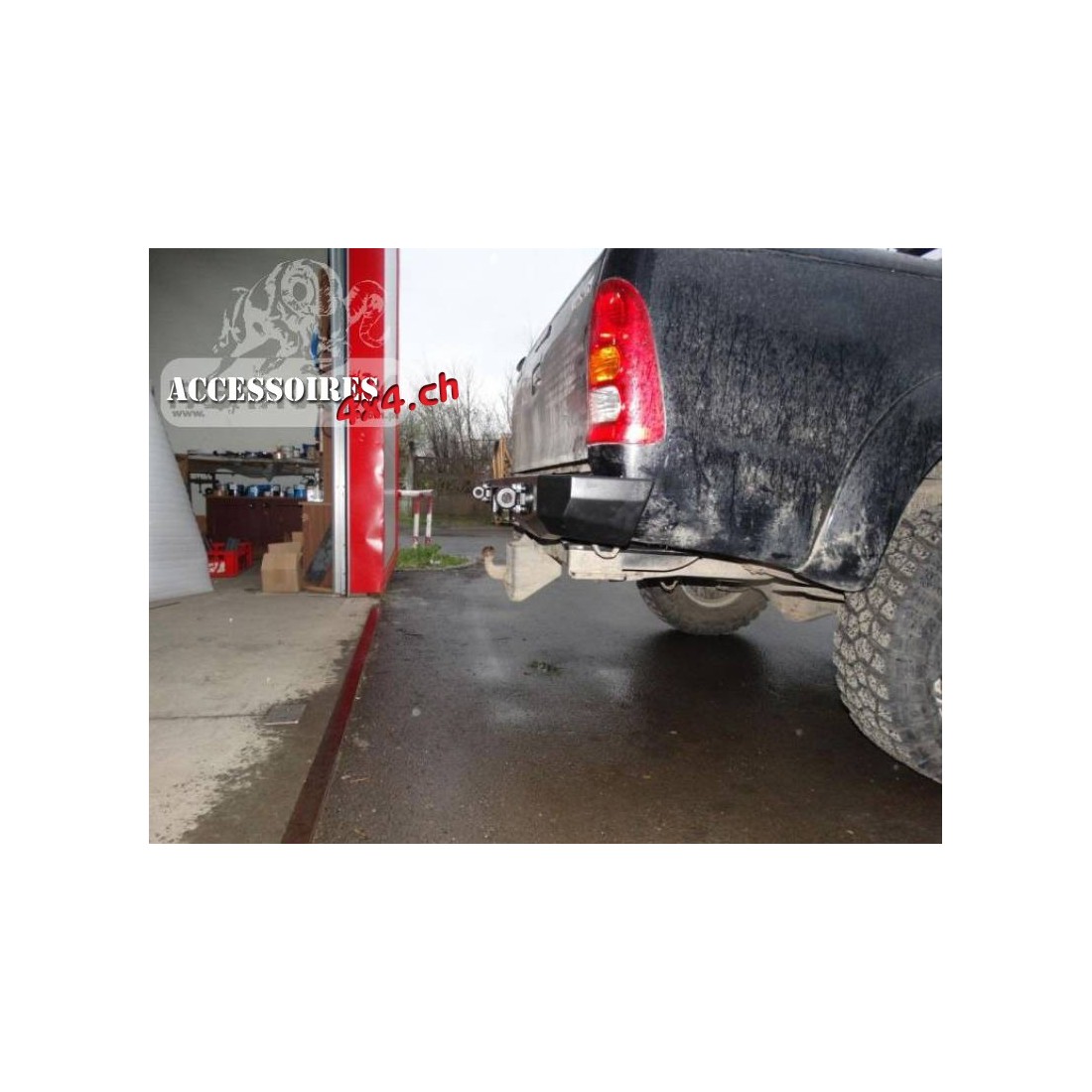 Rear bumper dedicated to the car TOYOTA HILUX 05-08. The main construction of the bumper is made of 4mm thick sheet metal, and the frame fasteners are made of 5mm thick sheet metal. The product is first cut by laser, then bent on a CNC press brake, and the right shape is obtained by manual finishing. The next stage is corrosion protection consisting of galvanizing and powder coating which gives the bumper a final look.