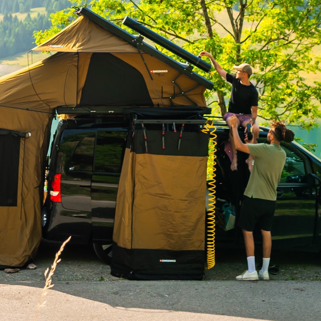 Thanks to its external mounting system on the roof rack or crossbars, this tent saves valuable interior space in your vehicle. It folds down quickly into a compact carry bag, allowing you to keep your trunk free for other essential gear such as a fridge, storage boxes or sleeping equipment. A smart solution for travellers who care about space!
