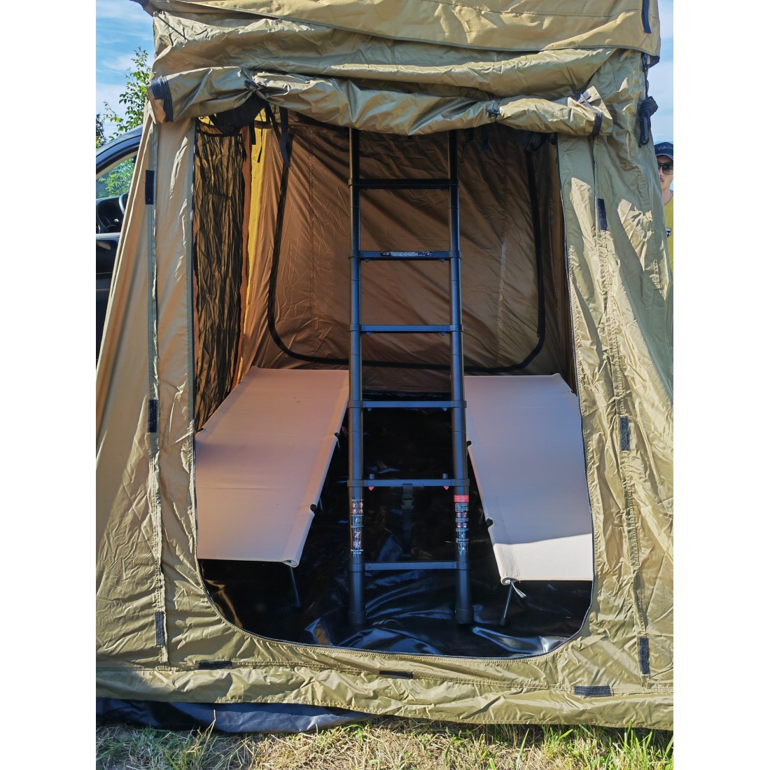 A practical camp bed that's easy to set up and fold down for extra comfort when camping.