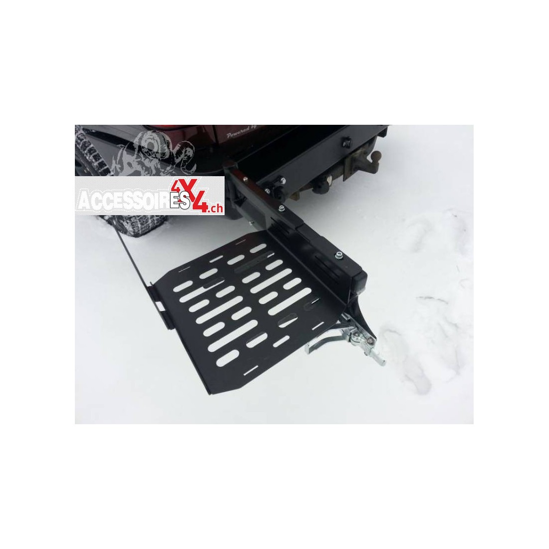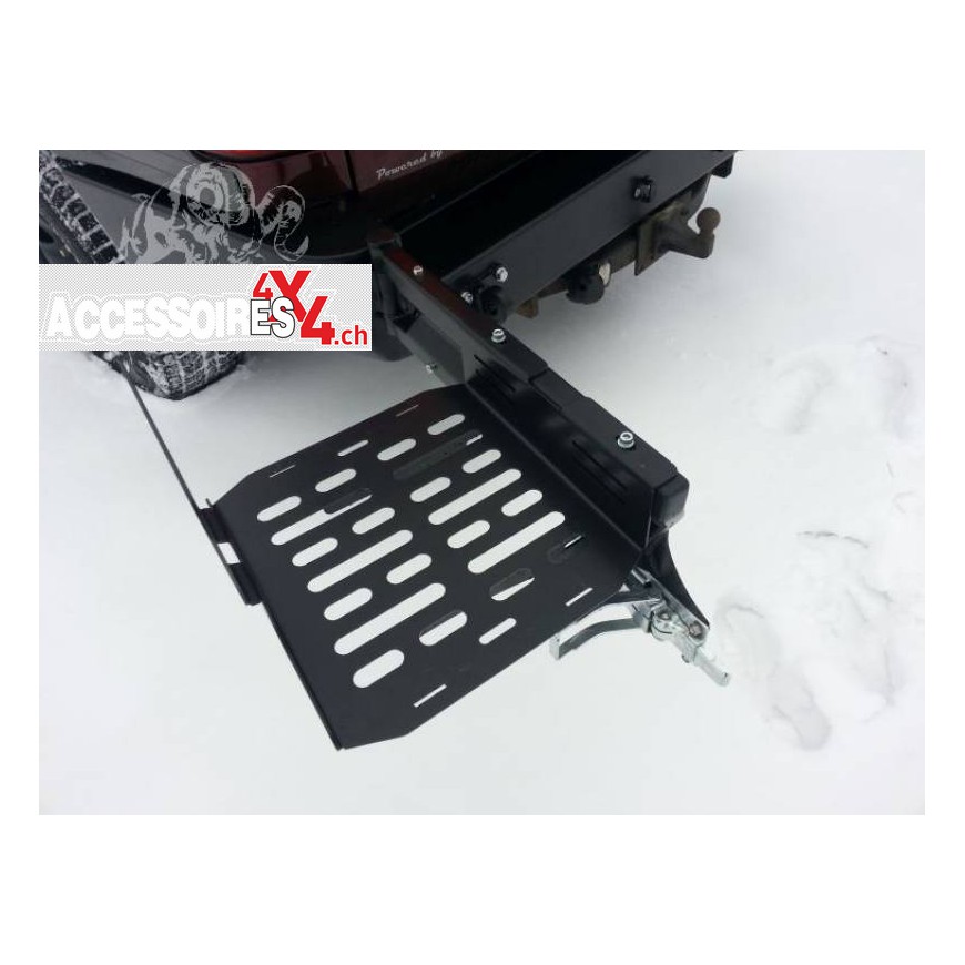 30L jerrycan attachment to the TOYOTA J100 car dedicated to the F4x4 bumper. The mounting structure is made of sheet metal 4 mm thick. The product is first laser cut, then folded on a press brake. The correct shape is obtained by manual finishing. The next step is corrosion protection consisting of galvanizing and powder coating that gives the final appearance to the fastener. The bottle cage is equipped with a 30 liter plastic bottle basket. Thanks to the solid construction, the support does not transmit vibrations and sounds in the center of the car. Closing the cartridge opens with the back door.