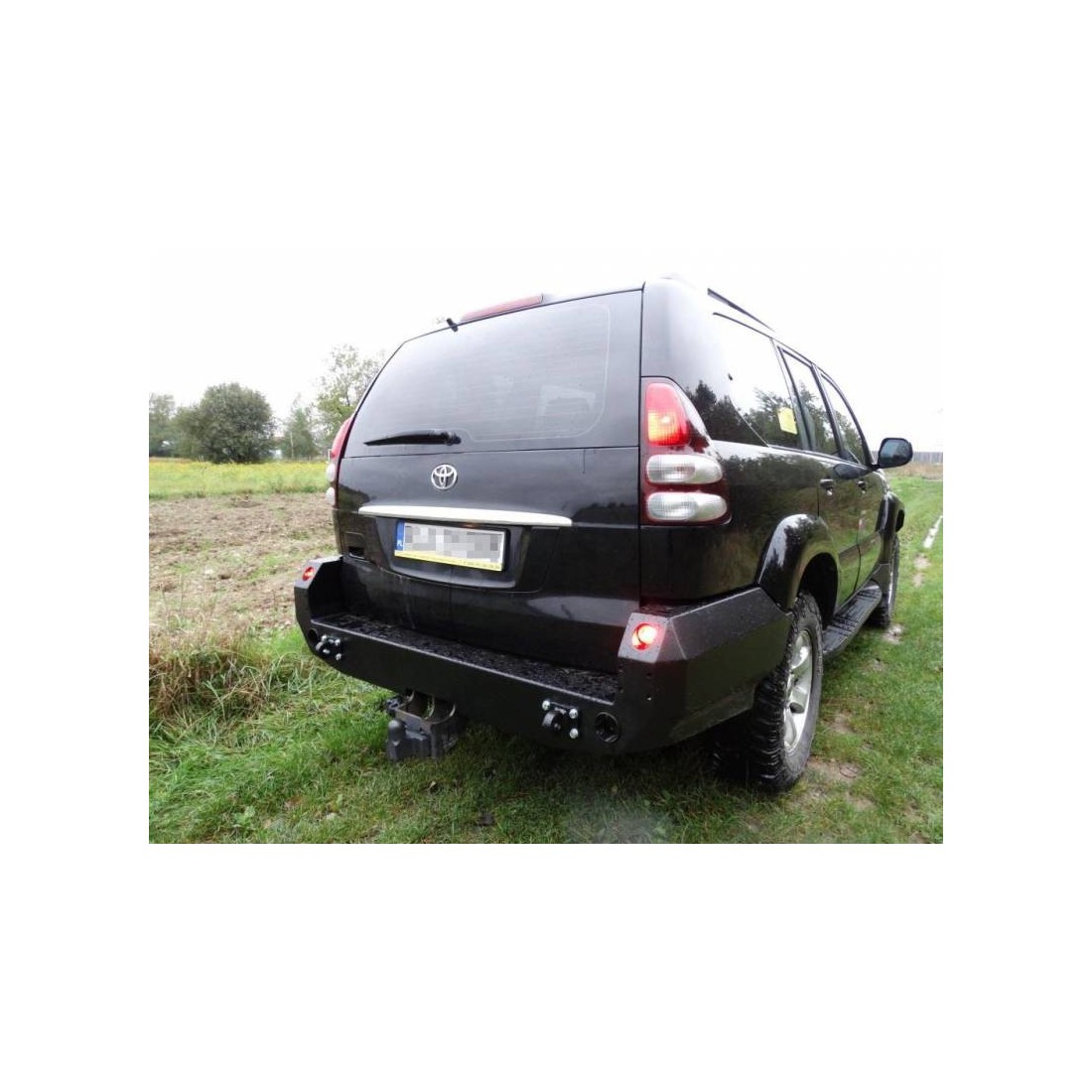 Rear bumper dedicated to the car TOYOTA LAND CRUISER J120. The main construction of the bumper is made of 4mm thick sheet metal, and the frame fasteners are made of 5mm thick sheet metal. The product is first cut by laser, then bent on a CNC press brake, and the right shape is obtained by manual finishing. The next stage is corrosion protection consisting of galvanizing and powder coating which gives the bumper a final look.