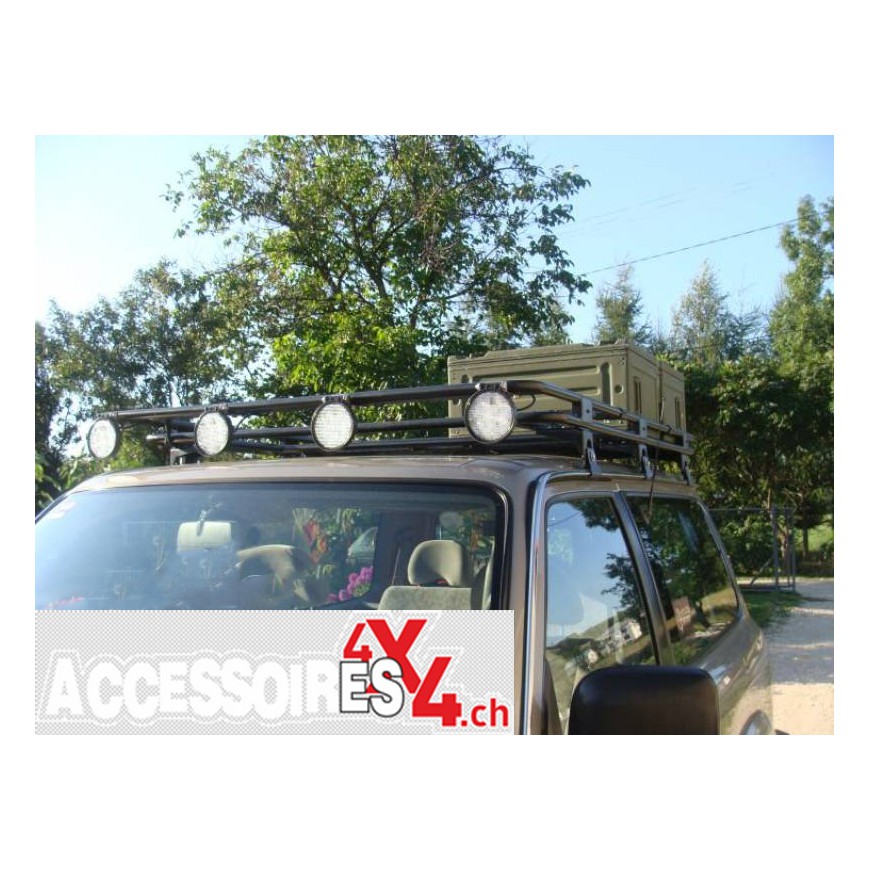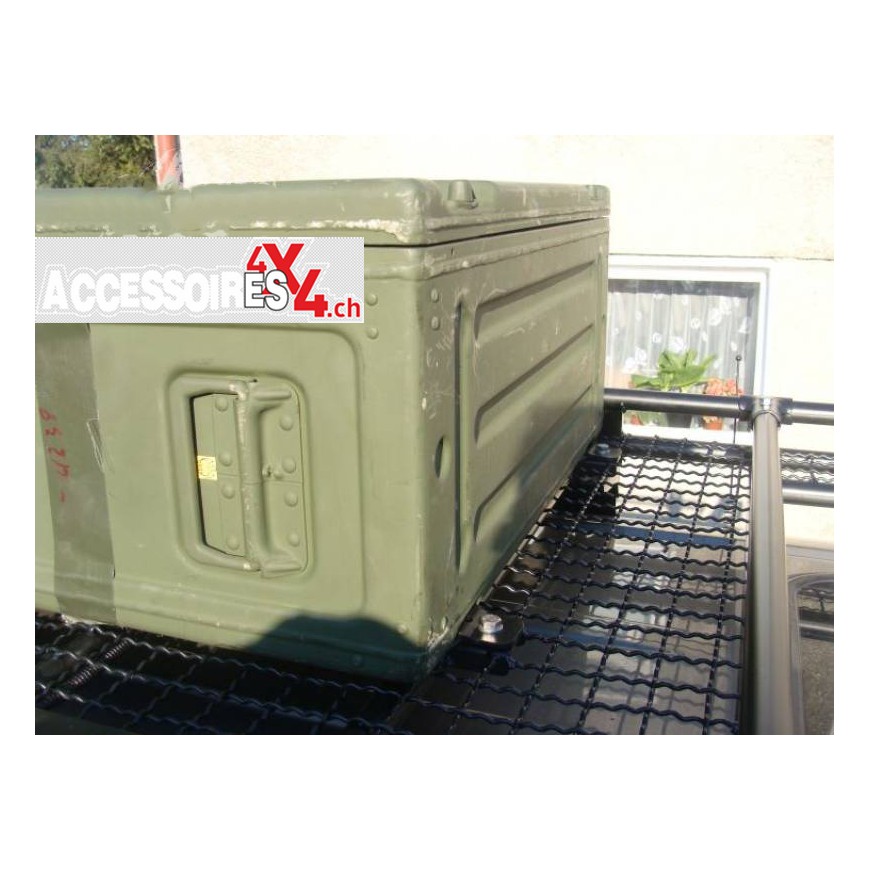Roof rack without mesh for NISSAN PATROL Y61 SWB. The basket compartment is made of Ø 25 mm tubes. At the front of the trunk, a band facilitates the installation of lamps and brackets for mounting the license plate. Similar solutions are on the sides and back of the trunk. You can also mount the awning without any problem. The roof rack is easy to assemble and disassemble. This will certainly facilitate long journeys related to carrying more luggage or a roof tent.