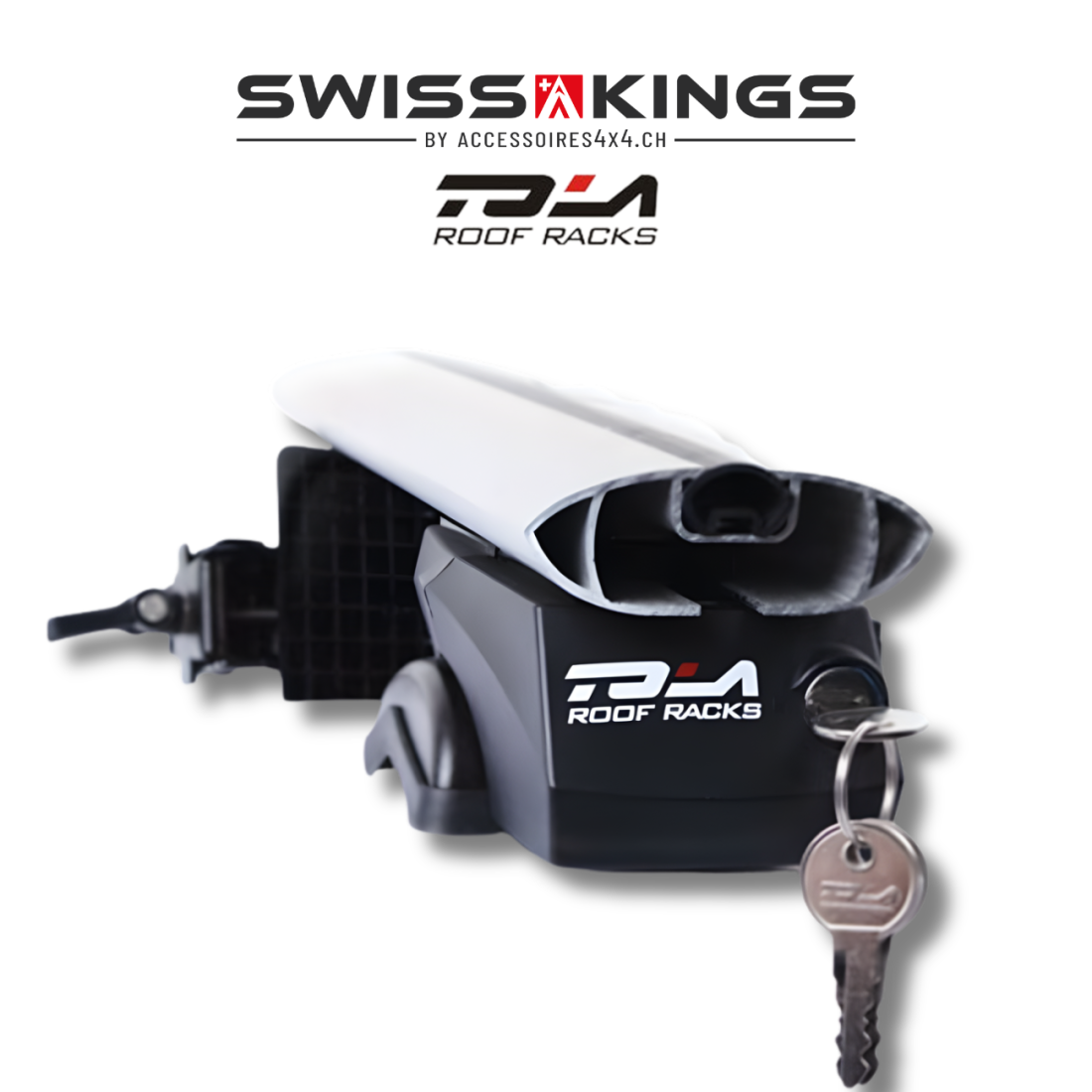Este pie de barra de techo se ajusta incluso en los rieles más anchos y extremos, Ø 20-68 mm. El revestimiento de goma protege las barras de arañazos.