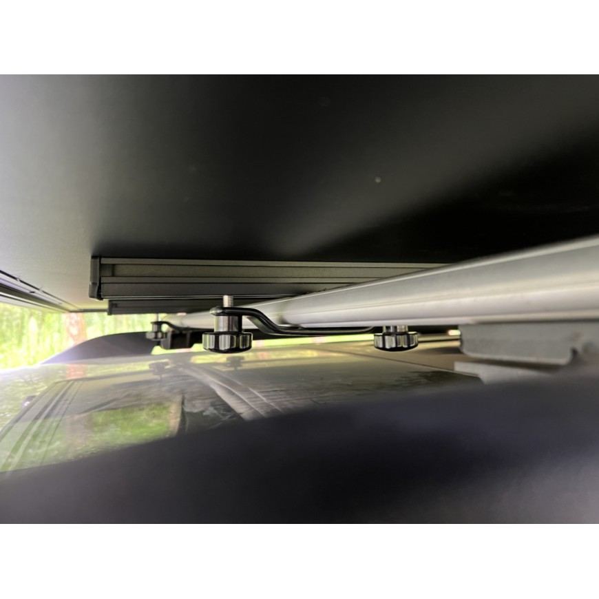 El sistema de fijación sigue siendo estándar: 2 perfiles de aluminio fijados al panel del techo que sujetan 2 varillas de techo transversales.