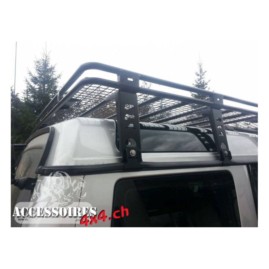 La canasta de techo con parilla para LAND ROVER DISCOVERY II. La canasta de techo està hecho de tubos de 25 mm de diámetro cubiertos con una malla de 30 x 30 mm. En la parte delantera del maletero, una banda facilita la instalación de lámparas y soportes para montar la placa de matrícula. Soluciones similares están en los lados y la parte posterior del maletero. También puede montar el toldo sin ningún problema. El maletero es fácil de montar y desmontar. Esto sin duda facilitará los viajes largos relacionados con llevar más equipaje o una carpa en el techo.