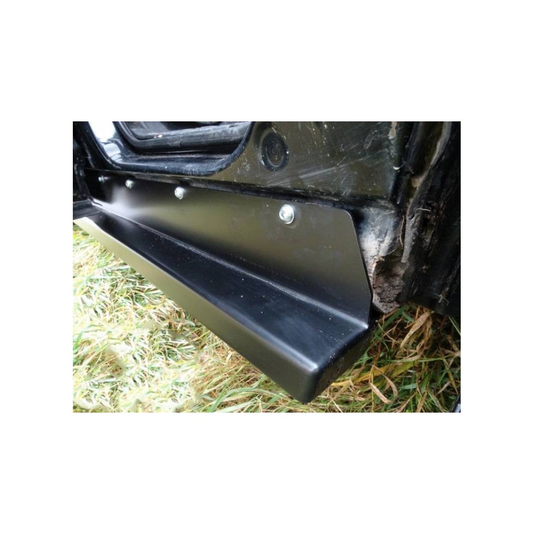 Los escalones laterales protegen el automóvil de las ramas de los árboles, los guijarros u otros obstáculos que sobresalen. Además, facilitan la entrada y salida del vehículo y los saltos de aluminio se deslizan en el escalón.