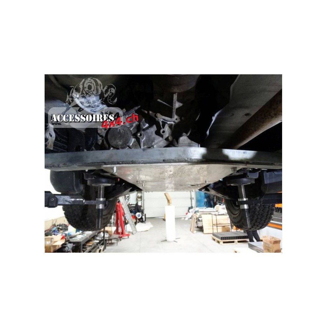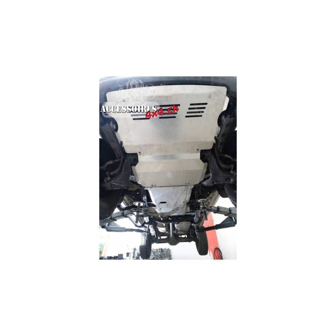 Cubierta de transmisión dedicada al automóvil MITSUBISHI L200 IV 05-10, fabricada en aluminio de 6 mm de espesor. El producto se corta primero con láser, luego se dobla sobre una prensa plegadora y se obtiene la forma correcta mediante acabado manual.