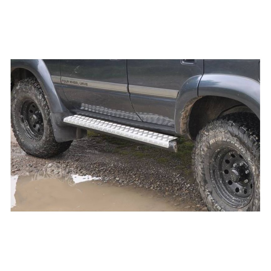 Los escalones laterales protegen el automóvil de las ramas de los árboles, los guijarros u otros obstáculos que sobresalen. Además, facilitan la entrada y salida del vehículo y los saltos de aluminio se deslizan en el escalón.