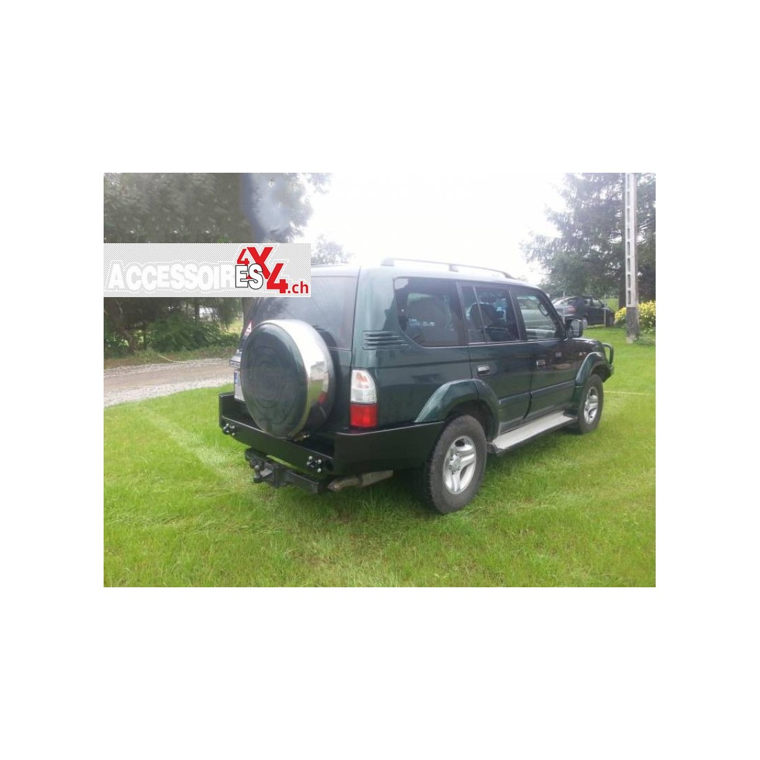 Paragolpes trasero dedicado al automóvil TOYOTA LAND CRUISER J95. La construcción principal del parachoques está hecha de chapa de 4 mm de espesor, y los sujetadores del marco están hechos de chapa de 5 mm de espesor. El producto se corta primero con láser, luego se dobla sobre una prensa plegadora CNC y se obtiene la forma correcta mediante acabado manual. La siguiente etapa es la protección contra la corrosión que consiste en galvanizado y recubrimiento en polvo que le da al parachoques una apariencia final.