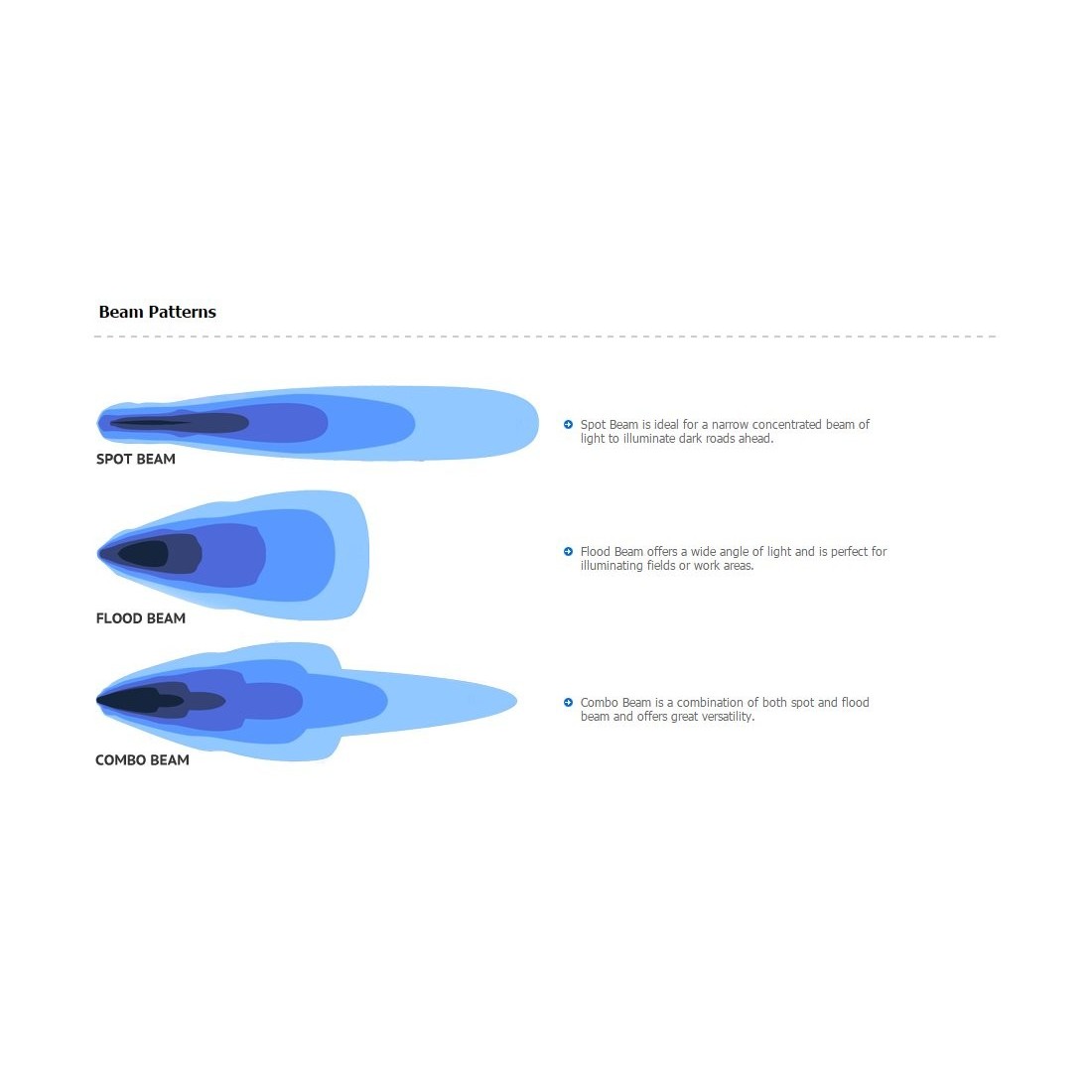 * Diferente patrón de luz de haz de inundación y luz puntual.