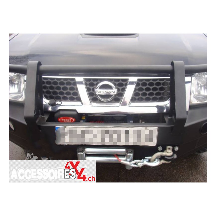 Paragolpes delantero con cabrestante con búfalo, dedicado al automóvil NISSAN NAVARA D22 01-04. La construcción principal del parachoques consiste en chapa de 3 mm de espesor, y la placa para el cabrestante y los sujetadores al marco de chapa de 5 mm de espesor. El producto primero se corta con láser, luego se pliega en una prensa plegadora controlada numéricamente. La forma correcta se obtiene mediante acabado manual. El siguiente paso es la protección contra la corrosión, que consiste en una galvanización y un recubrimiento en polvo que le da al parachoques una apariencia final. Este parachoques presenta orificios de montaje para las empuñaduras, dos orificios para levantar y orificios para lámparas halógenas. La construcción de acero sólido permite una operación potente del parachoques en el campo. El parachoques mejora significativamente la comodidad de la conducción todoterreno, permite el uso práctico del cabrestante, mejora la seguridad y le da al automóvil el carácter apropiado. En el juego encontrarás todos los elementos necesarios para el montaje.