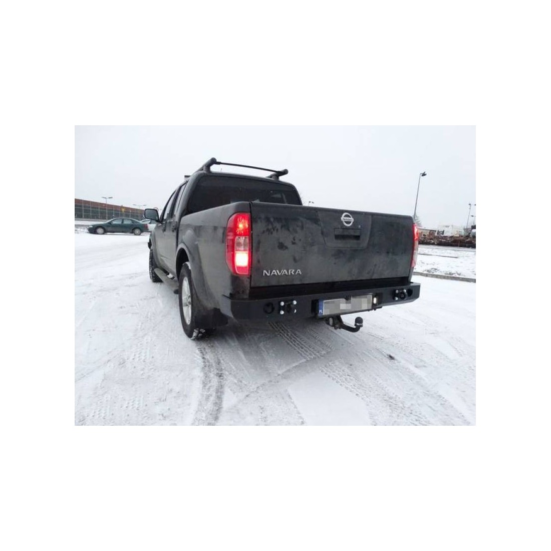 Paragolpes trasero dedicado al automóvil NISSAN NAVARA D40 05-10. La construcción principal del parachoques está hecha de chapa de 4 mm de espesor, y los accesorios del marco están hechos de chapa de 5 mm de espesor. El producto se corta primero con láser, luego se dobla sobre una prensa plegadora CNC y se obtiene la forma correcta mediante acabado manual. La siguiente etapa es la protección contra la corrosión que consiste en galvanizado y recubrimiento en polvo que le da al parachoques una apariencia final.