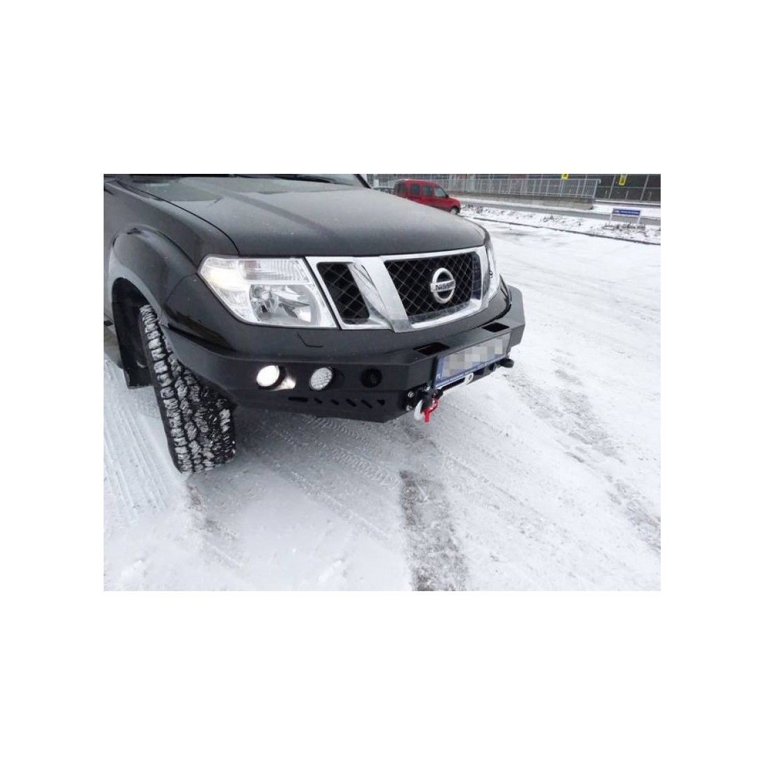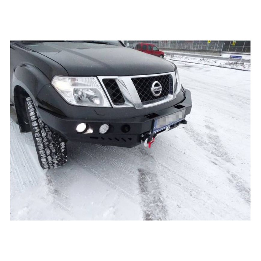 Paragolpes delantero con placa para cabrestante sin barra, dedicado al automóvil NISSAN NAVARA D40 10-14. La construcción principal del parachoques está hecha de chapa de 3 mm de espesor, y la placa para el cabrestante y las fijaciones al marco de chapa de 5 mm de espesor. El producto se corta primero con láser, luego se dobla sobre una prensa plegadora CNC y se obtiene la forma correcta mediante acabado manual. La siguiente etapa es la protección contra la corrosión que consiste en galvanizado y recubrimiento en polvo que le da al parachoques una apariencia final.