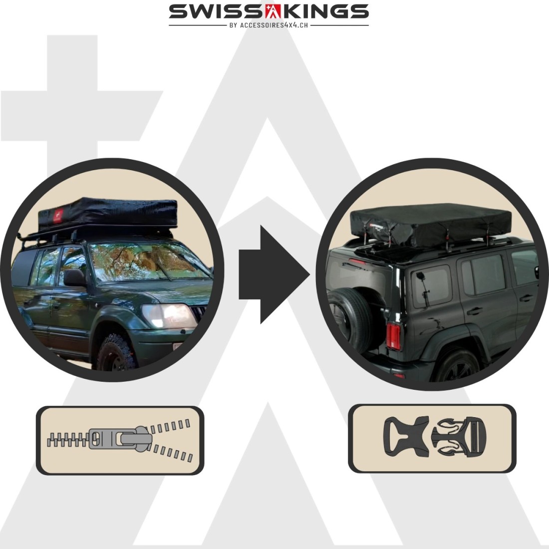 Kit de fijación para adaptar la lona TPU 2025 a modelos antiguos de tiendas de techo Swisskings con cremallera.<br data-start="196" data-end="199" />