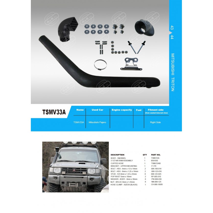 Atención: Snorkel para Mitsubishi Pajero con aletas anchas de 97 a 99, se trata de un modelo adaptable derivado del L200.
