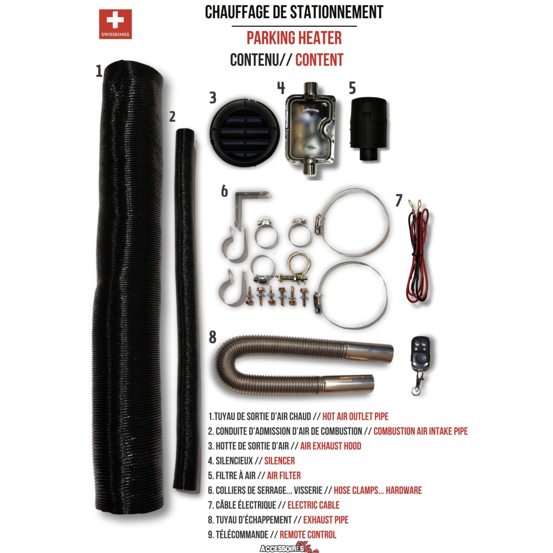 *Calentador de aire diésel todo en uno: Potencia de calefacción: 8 kW; Tipo de combustible: Diésel; Tensión nominal: 12V - 24V