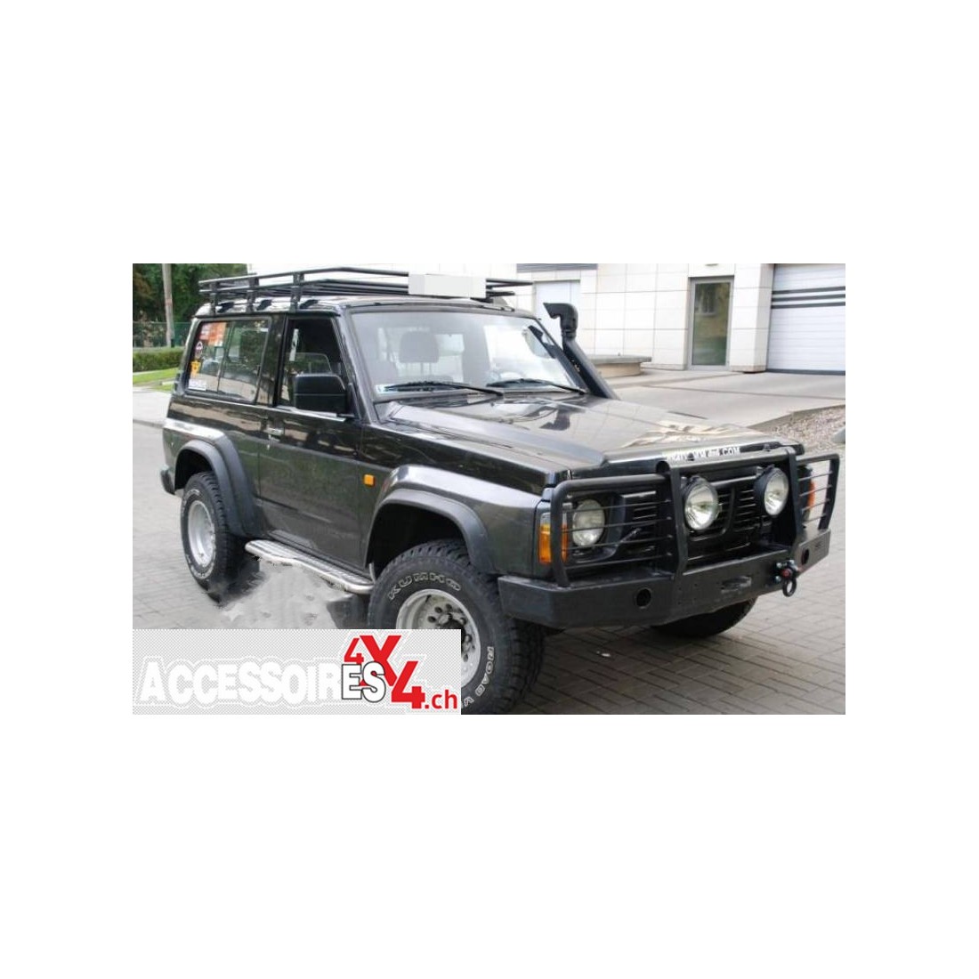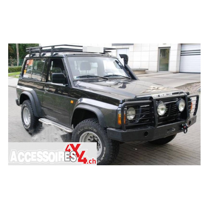 La canasta de techo para NISSAN PATROL Y60 SWB. La canasta de techo está hecho de tubos de Ø 25 mm. En la parte delantera del maletero, una banda facilita la instalación de lámparas y soportes para montar la placa de matrícula. Soluciones similares están en los lados y la parte posterior del maletero. También puede montar el toldo sin ningún problema. La canasta de techo es fácil de montar y desmontar. Esto sin duda facilitará los viajes largos relacionados con llevar más equipaje o una carpa en el techo.
