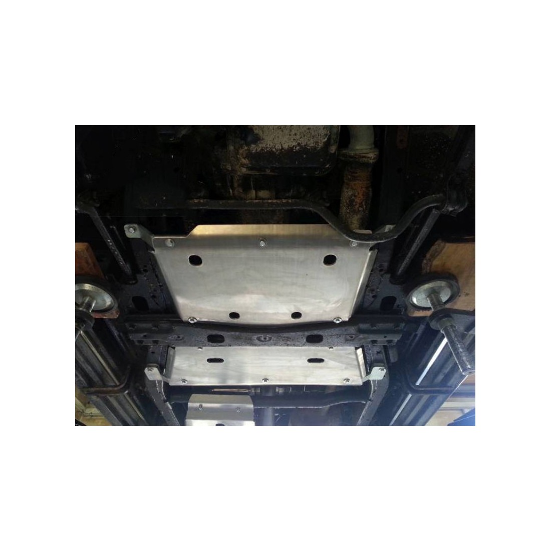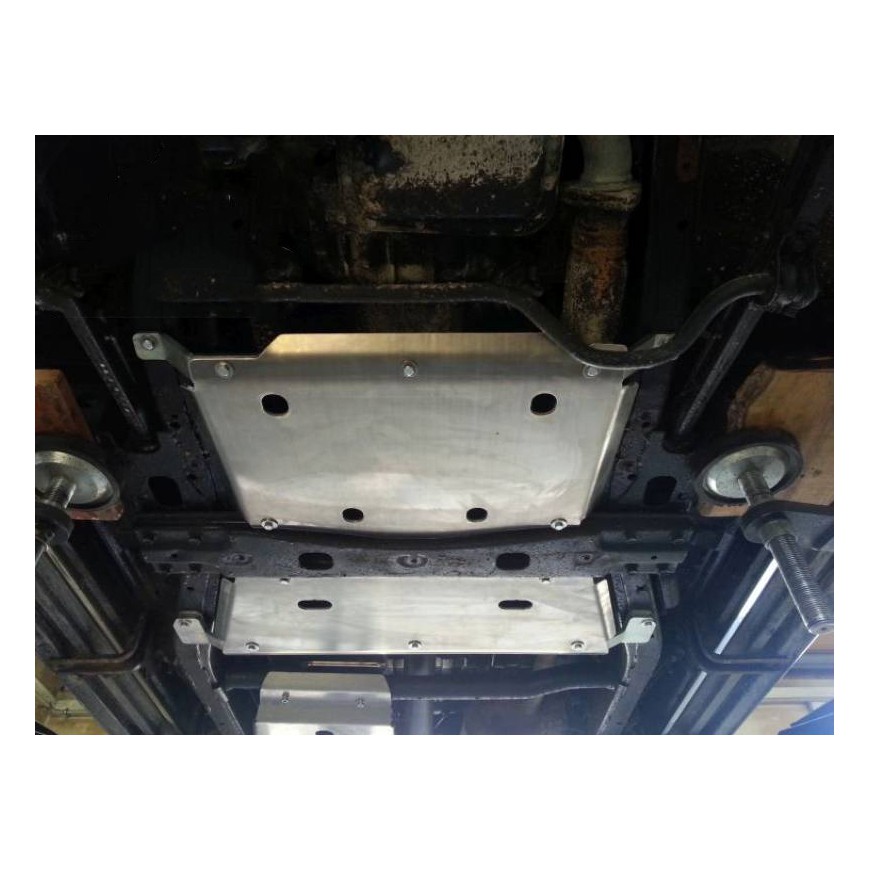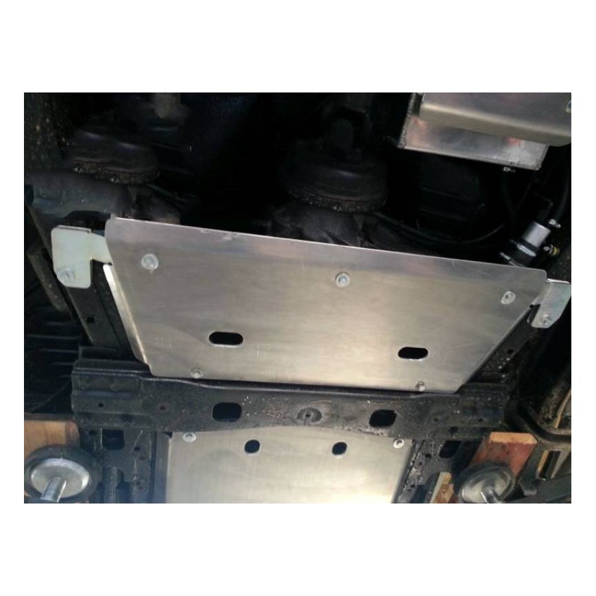 Tapa reductora para NISSAN PATROL Y61 y coche GU4. Hecho de aluminio de 6 mm de espesor. El producto se corta primero con láser, luego se dobla sobre una prensa plegadora y se obtiene la forma correcta mediante acabado manual. La cubierta protege la caja de cambios del vehículo desde abajo cuando se conduce fuera de la carretera.