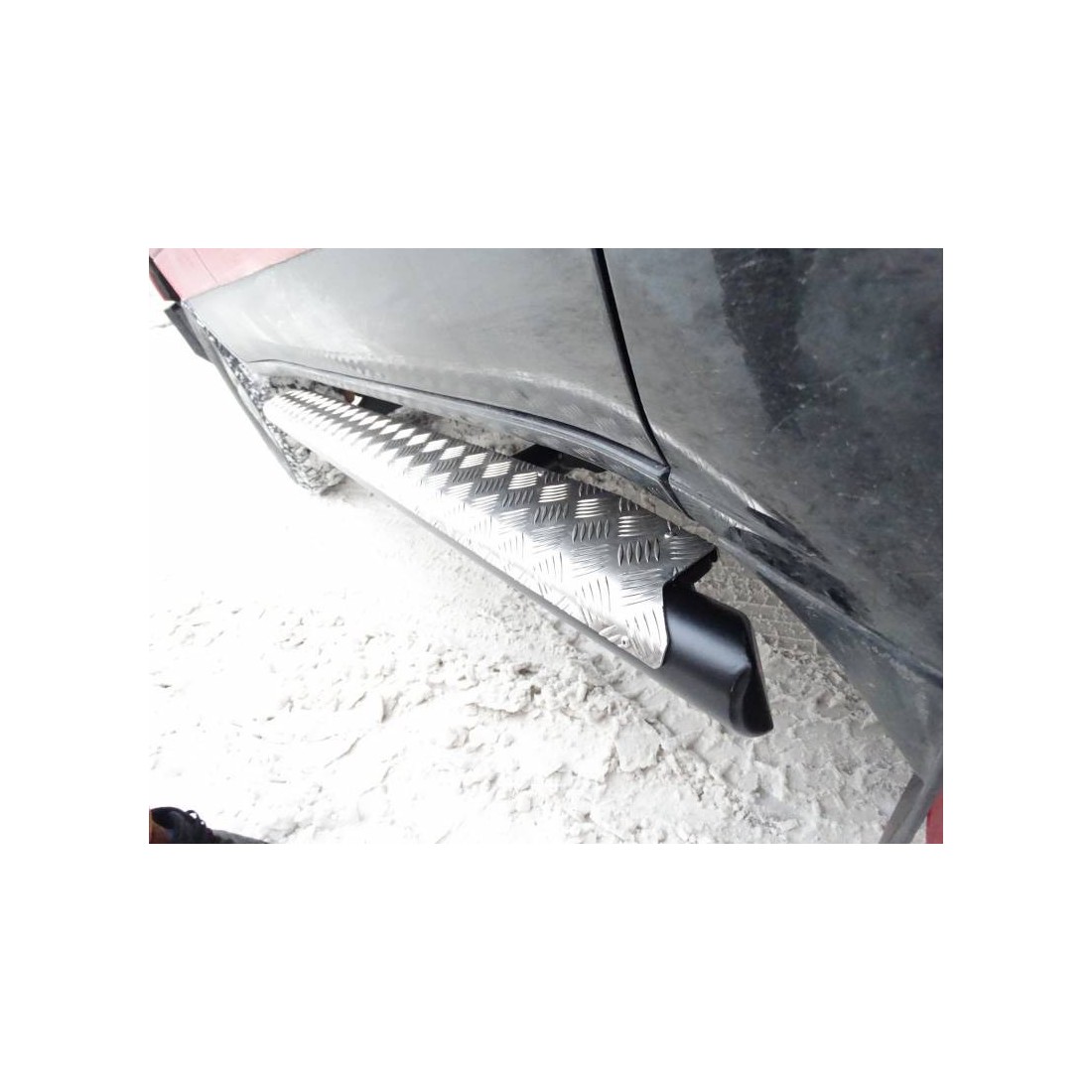 Les marches latérales protègent la voiture contre les branches, les cailloux et autres obstacles saillants. De plus, ils facilitent l'entrée et la sortie du véhicule et l'aluminium plonge tout en glissant sur la marche.