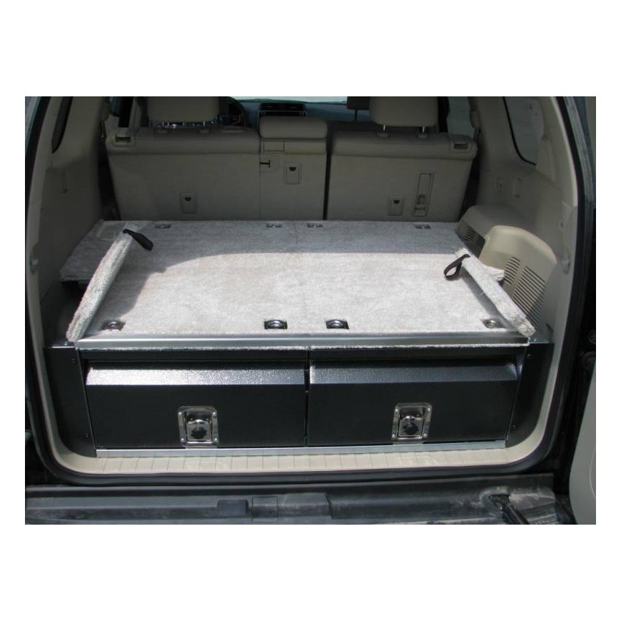La première construction en acier, produite en série dans une technologie à monter soi-même, de la plus haute qualité et avec le souci de s'intégrer à l'intérieur de la voiture. La structure portante de la caisse, ainsi que les tiroirs, sont en tôle d'acier galvanisée qui offre une très bonne protection contre la corrosion. Le mécanisme d'ouverture du tiroir se compose d'une section en acier inoxydable et d'un ensemble de roulements montés à la fois sur le bas et le haut des guides ainsi que sur les côtés du tiroir. Cette construction des guides élimine tout jeu entre le tiroir et la structure de support, ce qui garantit qu'aucun bruit désagréable ne soit émis par la carrosserie lors de la conduite sur le terrain et garantit une grande fiabilité. Chacun des tiroirs est équipé de deux cloisons pouvant être retirées en fonction des besoins. Les façades sont peintes à la poudre d'argent antique, ce qui confère toute leur esthétique. Les deux tiroirs sont équipés de serrures solides en acier inoxydable pouvant être verrouillées. La partie supérieure est faite de contreplaqué recouvert de feutre, fixé sur les bords avec un coin en aluminium, ce qui permet à l'ensemble de se fondre parfaitement dans l'habitacle de la voiture et est agréable à utiliser. La carrosserie est équipée de huit poignées de casier, permettant une protection contre les objets glissants tels qu'un réfrigérateur ou un coffre placé à sa surface. Sur les côtés du panneau avec tiroirs et derrière le canapé arrière, il y a des compartiments de rangement supplémentaires, ce qui permet une utilisation maximale de l'espace pour les bagages et une meilleure organisation des objets que nous emportons en voyage.