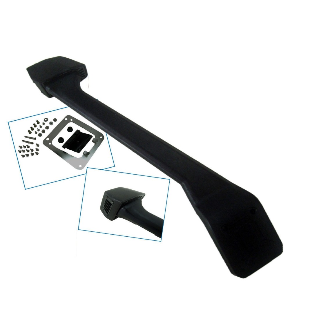Snorkel livré complet avec inserts et visserie de qualité, ainsi que tous les éléments nécessaires au raccordement du snorkel à la boite à air d’origine du véhicule.