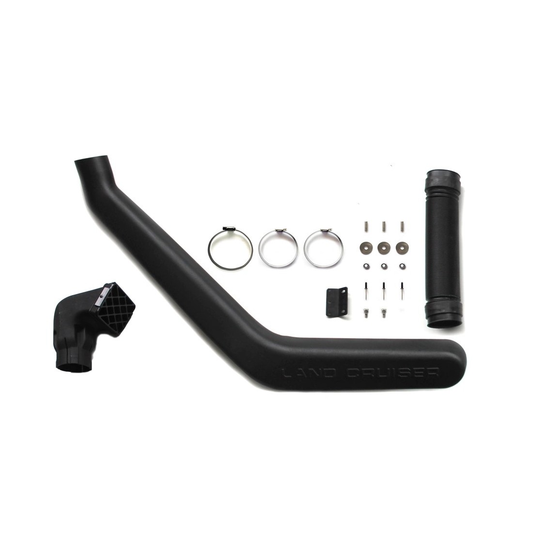 Chaque snorkel est livré complet avec gabarit de découpe, inserts et visserie de qualité, ainsi que tous les éléments nécessaires au raccordement du snorkel à la boite à air d’origine du véhicule.