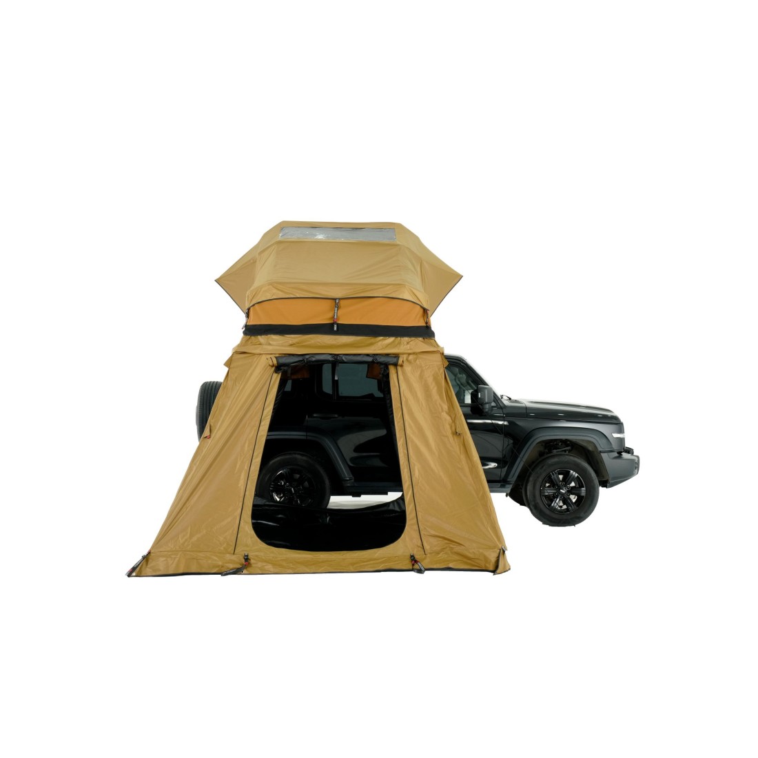 Conçue pour s’adapter à toutes les situations, l’annexe a été spécialement travaillée pour offrir une flexibilité totale. Grâce à sa hauteur réglable et son design optimisé, elle s’adapte parfaitement à votre installation et vous garantit un espace de vie pratique et confortable, quelle que soit la configuration de votre campement.