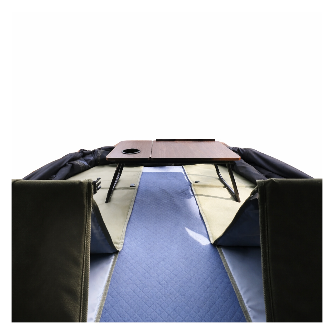 Matelas : coussins de 5 cm à haute densité, avec housse de matelas en coton et tapis anti-condensation de 10 mm.