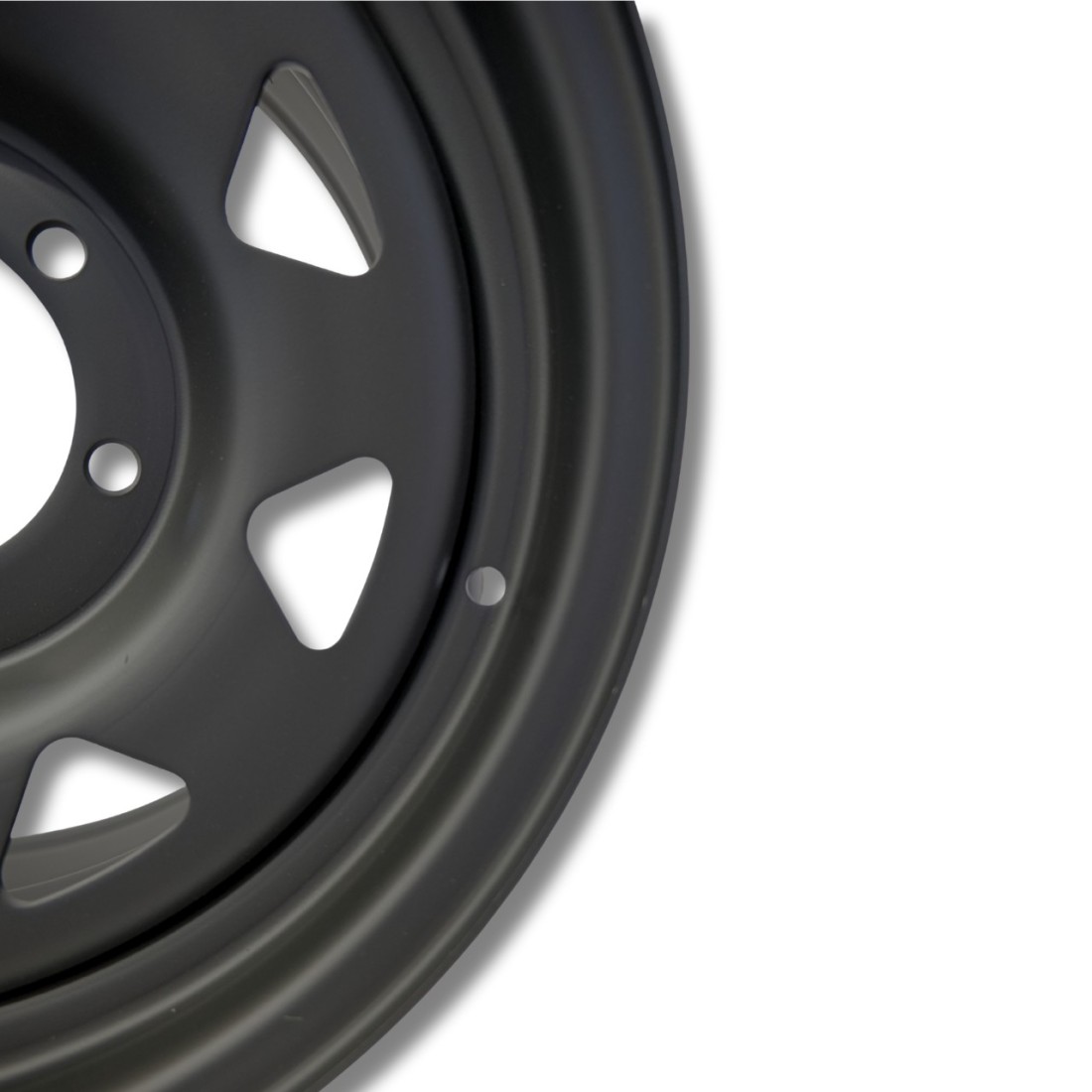 Dim.: 8 x 16 | P.C.D: 6 / 139.7 | E.T.: 35 | CB: 110 | Modèle: Triangular | Couleur: noire mate