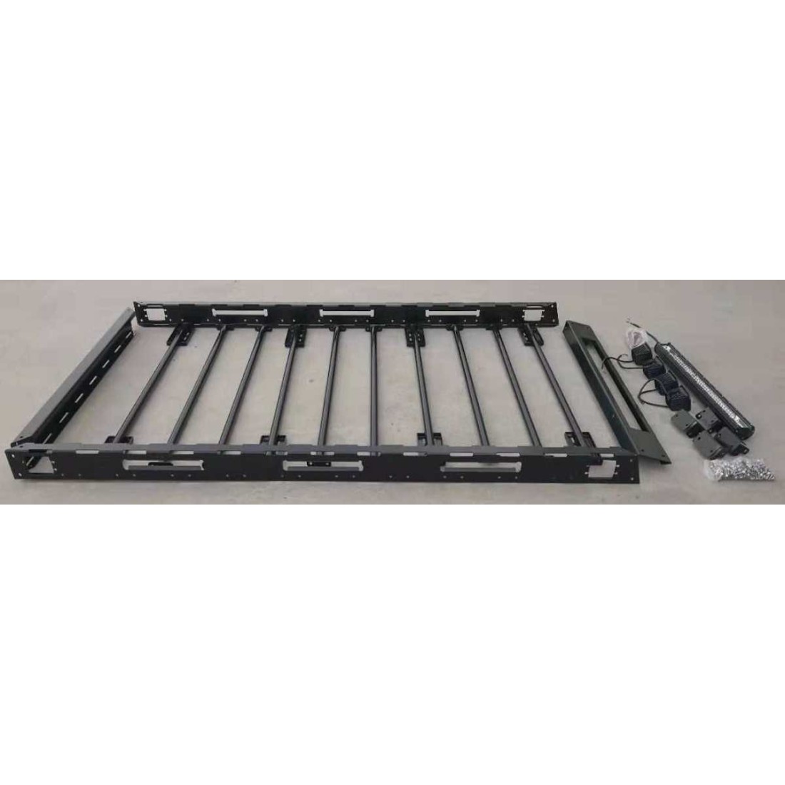Galerie de toit en acier 220 cm à assembler -barre Led incluse.