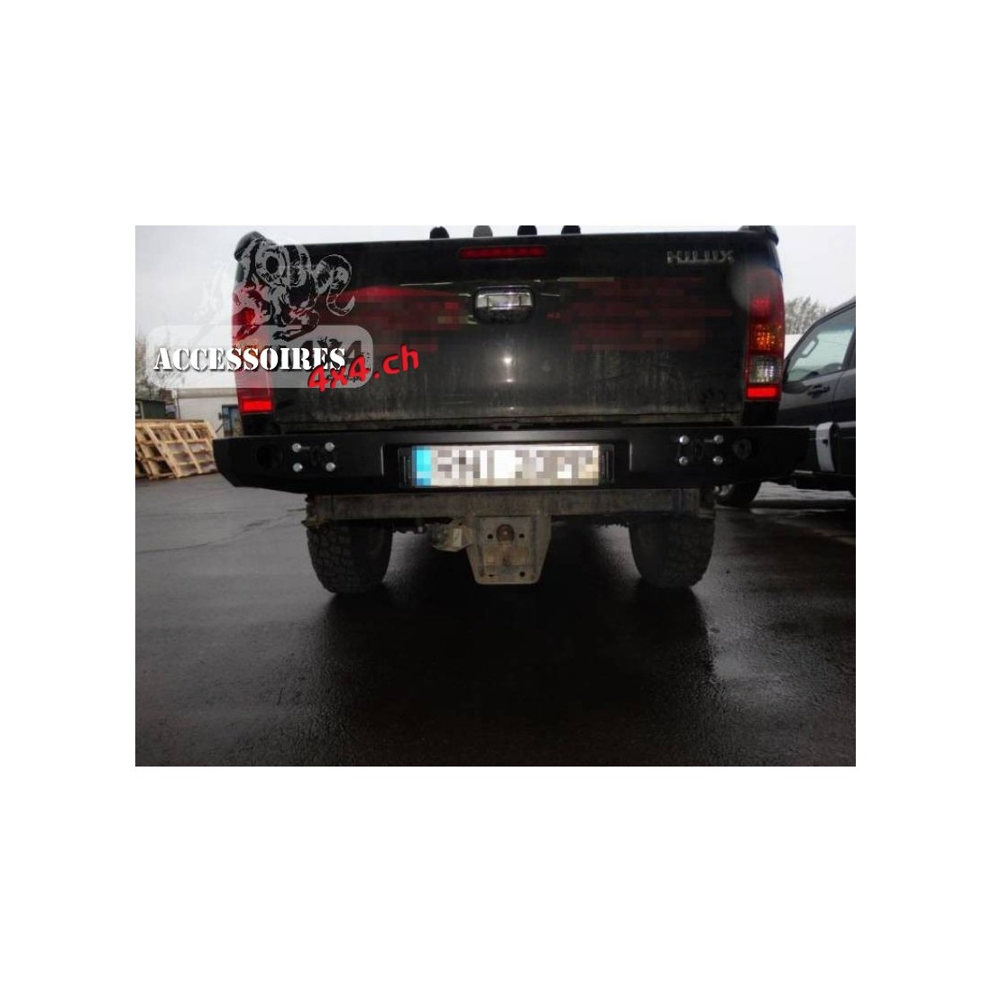 Paraurti posteriore dedicato all'auto TOYOTA HILUX 05-08. La struttura principale del paraurti è realizzata in lamiera spessa 4 mm e gli elementi di fissaggio del telaio sono in lamiera spessa 5 mm. Il prodotto viene prima tagliato con il laser, quindi piegato su una pressa piegatrice CNC e la forma corretta si ottiene con la finitura manuale. La fase successiva è la protezione dalla corrosione costituita da zincatura e verniciatura a polvere che conferisce al paraurti un aspetto finale.