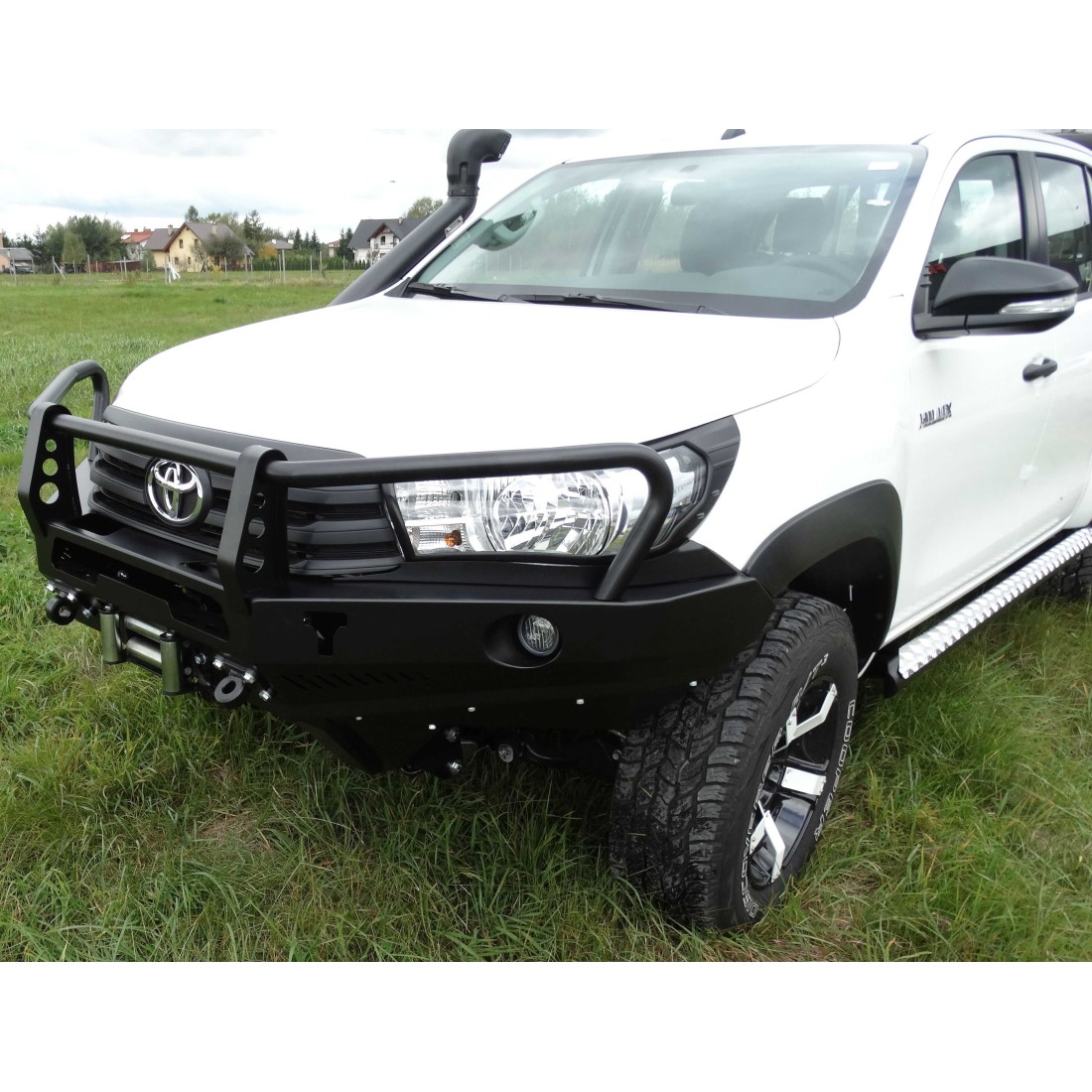 Il paraurti ha due ganci per i fili, i due fori per l'ascensore e i fori per le lampade alogene. La robusta struttura in acciaio consente il pieno utilizzo del paraurti sul campo.