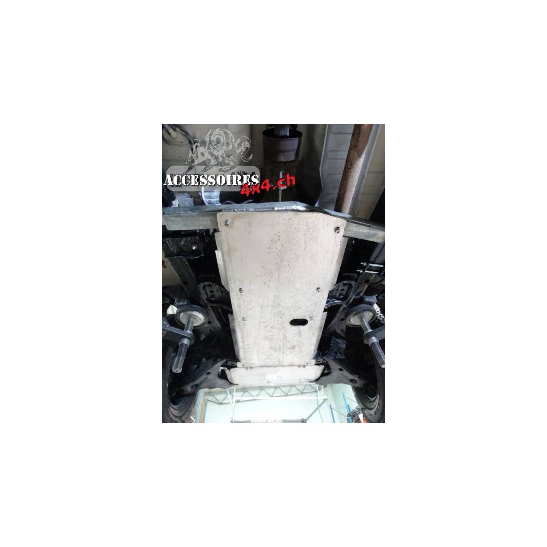 Copertura della trasmissione dedicata all'auto MITSUBISHI L200 IV 05-10, realizzata in alluminio di spessore 6 mm. Il prodotto viene prima tagliato con il laser, quindi piegato su una pressa piegatrice e la forma corretta si ottiene con la finitura manuale.