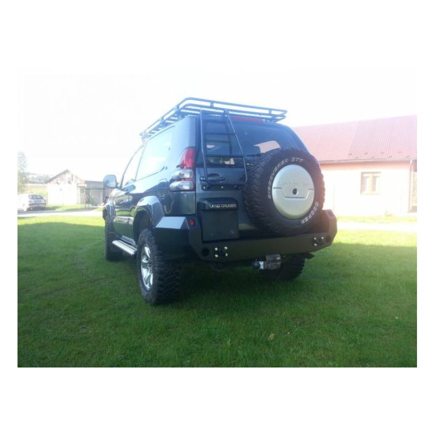 Paraurti posteriore dedicato all'auto TOYOTA LAND CRUISER J125. La struttura principale del paraurti è realizzata in lamiera spessa 4 mm e gli elementi di fissaggio del telaio sono in lamiera spessa 5 mm. Il prodotto viene prima tagliato con il laser, quindi piegato su una pressa piegatrice CNC e la forma corretta si ottiene con la finitura manuale. La fase successiva è la protezione dalla corrosione costituita da zincatura e verniciatura a polvere che conferisce al paraurti un aspetto finale.
