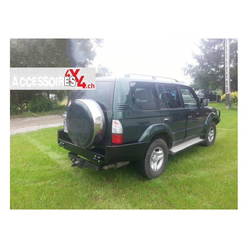 Paraurti posteriore dedicato all'auto TOYOTA LAND CRUISER J95. La struttura principale del paraurti è realizzata in lamiera spessa 4 mm e gli elementi di fissaggio del telaio sono in lamiera spessa 5 mm. Il prodotto viene prima tagliato con il laser, quindi piegato su una pressa piegatrice CNC e la forma corretta si ottiene con la finitura manuale. La fase successiva è la protezione dalla corrosione costituita da zincatura e verniciatura a polvere che conferisce al paraurti un aspetto finale.