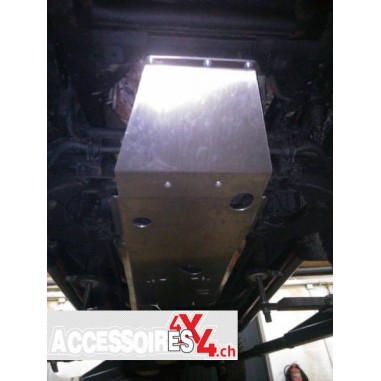 Copertura del telaio dedicata all'auto NISSAN NP300, realizzata in alluminio di spessore 6 mm. Il prodotto viene prima tagliato con il laser, quindi piegato su una pressa piegatrice e la forma corretta si ottiene con la finitura manuale. Il coperchio protegge il motore, il cambio e il riduttore del veicolo dal basso durante la guida fuoristrada.