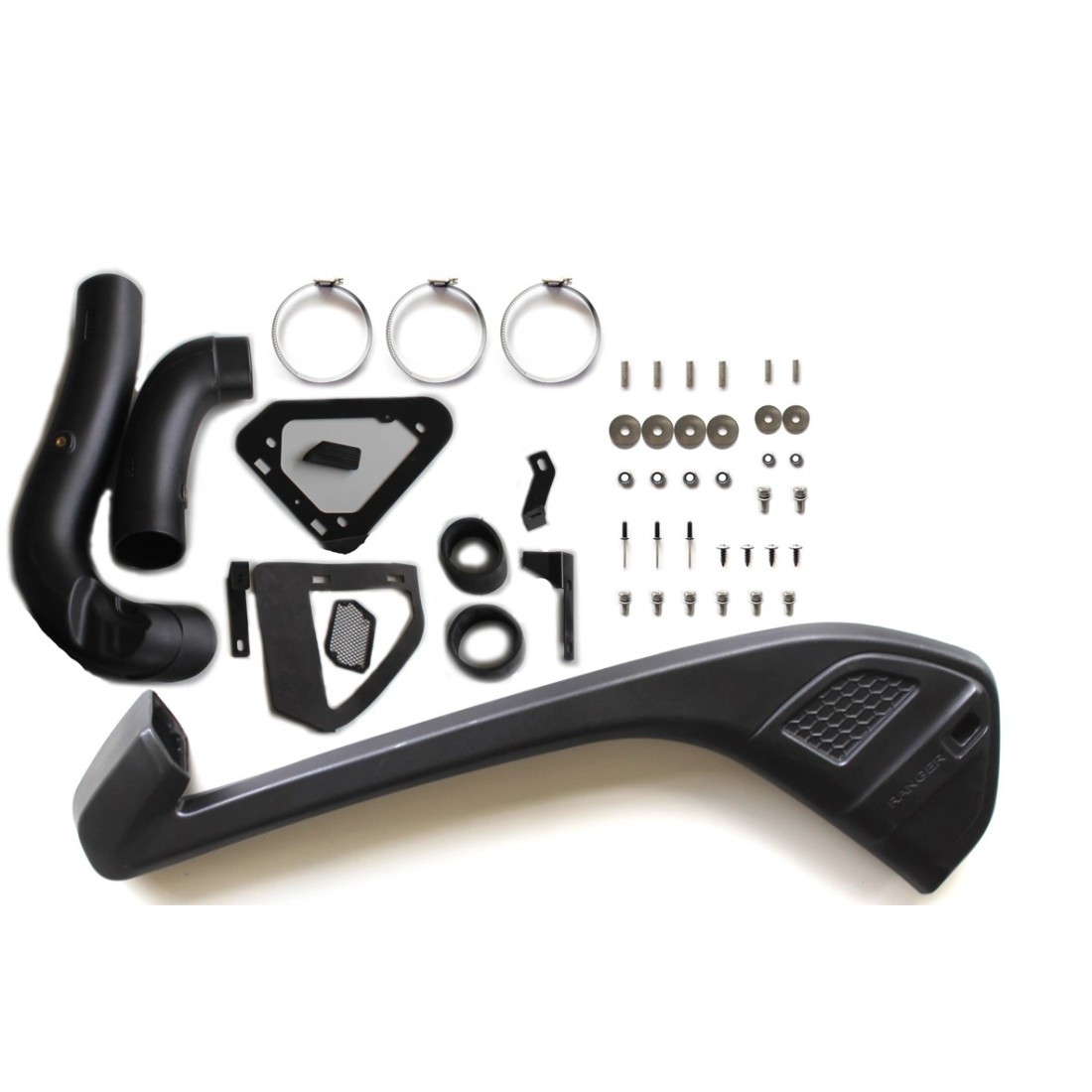 Ogni snorkel viene fornito completo con inserti e viteria di qualità, insieme a tutti gli elementi necessari per il collegamento dello snorkel alla scatola del filtro aria originale del veicolo.