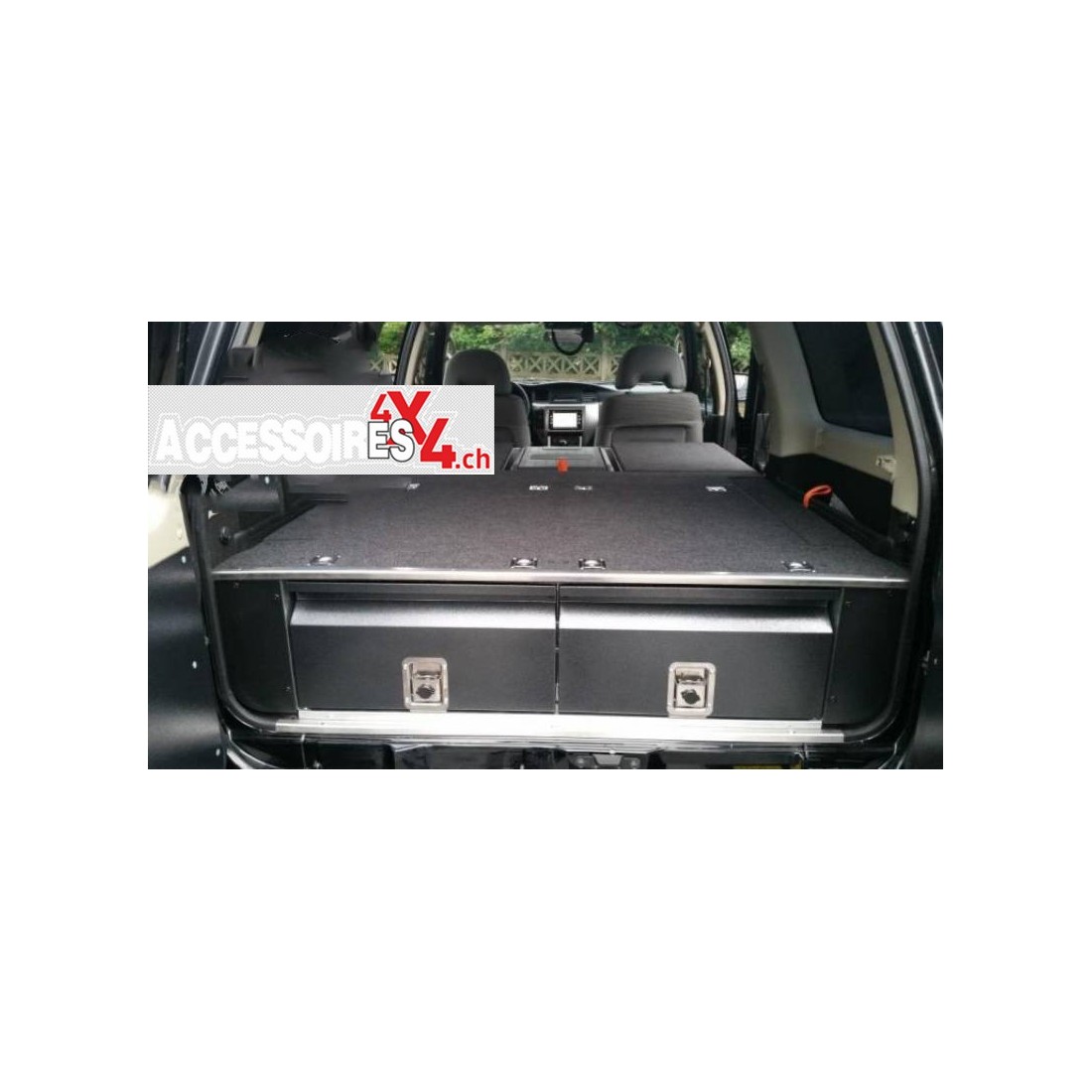 Carrozzeria dedicata a NISSAN PATROL Y61. La struttura portante del corpo, così come i cassetti, sono realizzati in lamiera d'acciaio, zincata, che offre un'ottima protezione dalla corrosione. Il meccanismo di apertura del cassetto è costituito da una sezione in acciaio inossidabile e da una serie di cuscinetti volventi montati sia nella parte inferiore che in quella superiore delle guide, nonché sui lati del cassetto. Questa costruzione delle guide elimina qualsiasi gioco tra il cassetto e la struttura di supporto, il che garantisce che non vengano emessi rumori sgradevoli dalla carrozzeria durante la guida sul campo e garantisce un'elevata affidabilità. Ciascuno dei cassetti è dotato di due divisori, che possono essere rimossi a seconda delle esigenze. Al posto del divano posteriore, sono montati bauli aggiuntivi, che insieme alla parte posteriore del corpo formano un intero piatto per dormire. Il bagagliaio centrale ha una perforazione ritagliata ed è il luogo ideale per un frigorifero, mentre le valigie laterali sono un ottimo spazio di carico. C'è un ampio spazio di archiviazione funzionale tra i moduli anteriori e la parte posteriore del corpo. I frontali sono verniciati a polvere in argento antico, che conferisce tutta l'estetica. Entrambi i cassetti sono dotati di robuste serrature in acciaio inossidabile che possono essere bloccate. La parte superiore è realizzata in multistrato rivestito in tessuto di feltro, fissato ai bordi con un angolo in alluminio, il che fa sì che il tutto si fonda perfettamente con l'interno dell'auto ed è piacevole da usare. La carrozzeria è dotata di otto maniglie per gli armadietti, che consentono la protezione da oggetti scorrevoli come un frigorifero o un baule posto sulla sua superficie. Ai lati del pannello con cassetti e dietro il divano posteriore ci sono ulteriori vani portaoggetti, che consentono il massimo utilizzo del bagagliaio e una migliore organizzazione degli oggetti che portiamo in viaggio. Durante la costruzione del corpo, ci siamo occupati del facile assemblaggio, grazie al quale una persona può fare da sola l'assemblaggio e l'assemblaggio ha avuto luogo senza disturbare l'interno originale del bagagliaio. Uno dei molti vantaggi della carrozzeria è che può essere rimosso dall'auto in qualsiasi momento e reinstallato se necessario. I mobili per dormire sono la soluzione ideale per i lunghi viaggi, assicurano grande indipendenza e comfort di viaggio.